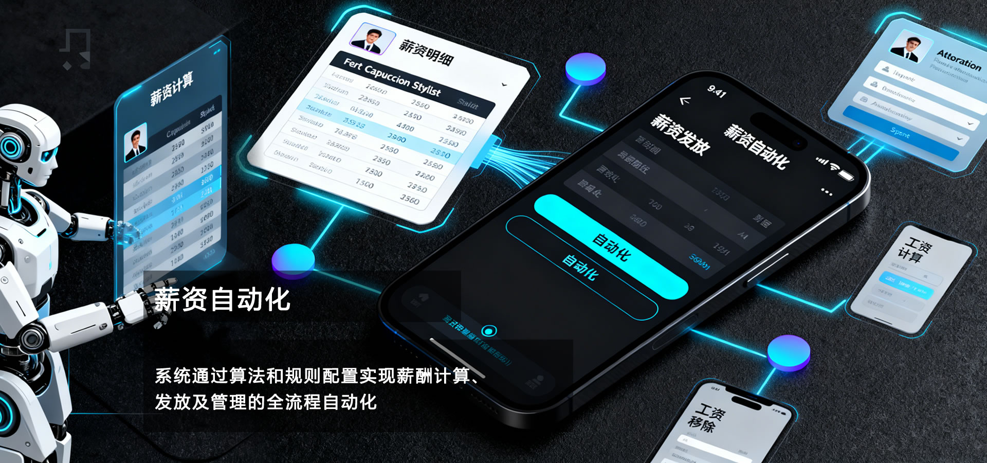 人事管理、考核評估、技能檔案管理、排班管理、考勤管理、假期管理、薪資管理。